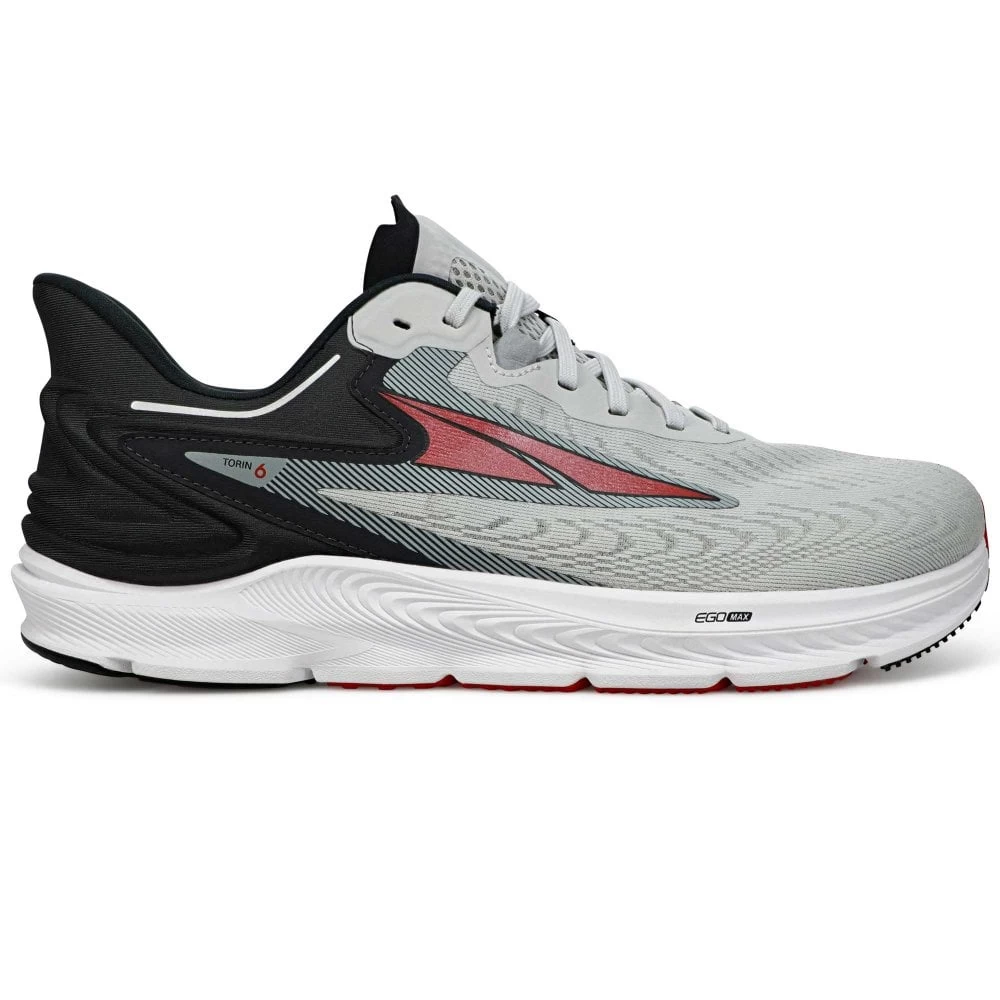 The men’s Altra Torin 6 is a max cushioning road running shoe described as: “The new Torin 6 is ready to work as hard as you do. This best-selling road shoe is equipped with our Altra EGO™ MAX midsole foam and an updated molded heel collar that keeps up for mile after mile. This everyday road shoe is made for any road, any run, and any distance with our Standard FootShape™ fit designed for performance.”