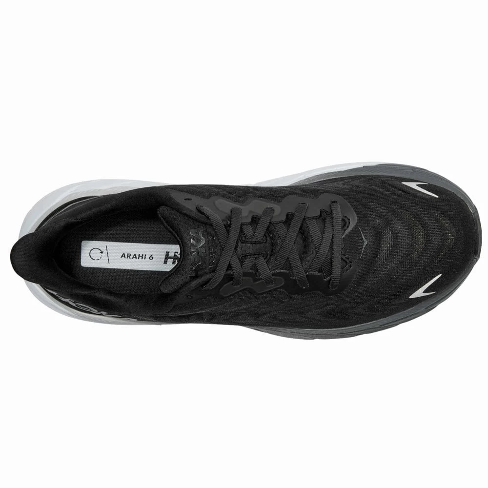 Hoka describe the wide version mens Arahi 6 cushioned support running shoe as “Surprisingly light for a stability shoe. Grounded in the same stabilizing J-FrameTM as its predecessor. Boasting a seemingly contradictory combination of maximal cushioning and minimal weight, it’s been refined with a pull tab and mesh upper with zones of breathability. Remarkably light and exceptionally comfortable, the Arahi 6 is a lively support shoe for a wide range of runners.”