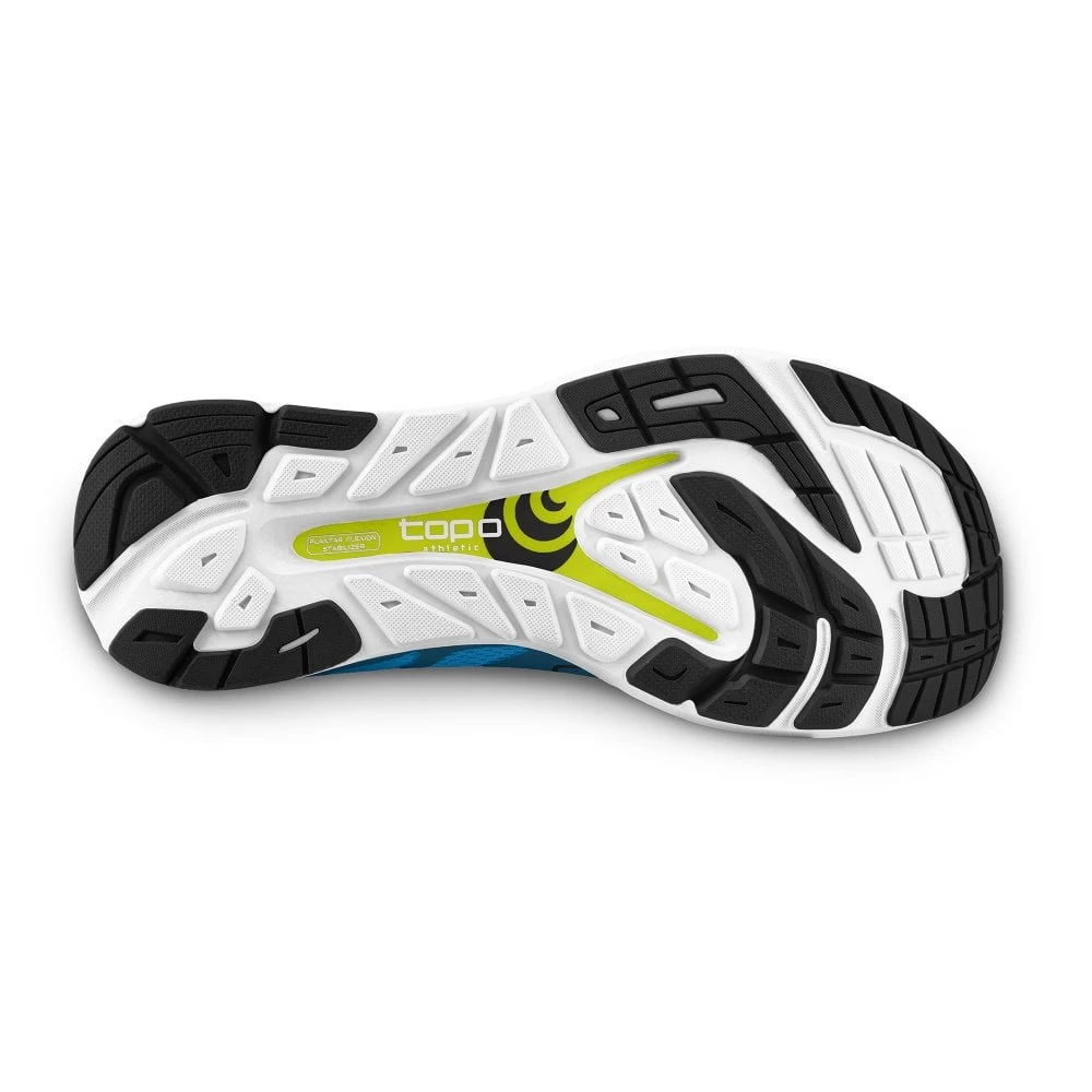 Topo say: “Run like the wind with Zephyr. An elastomer stability plate runs inside the midsole of these tempo running shoes, helping stabilize the forefoot and aid propulsion during plantar flexion. A ZipFoam™ core offers more rebound and long-term resilience than traditional EVA. A lightweight, breathable mesh upper with printed overlays secures the foot over the platform.”